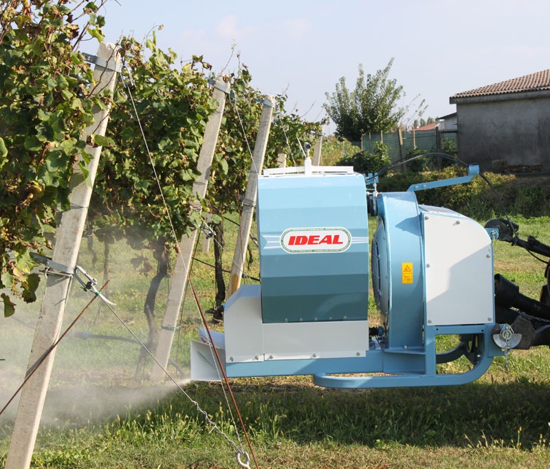 Impolveratore pneumatico prodotto nella versione trainata da kg 500 e nella versione portata dal sollevatore del trattore da kg 250 usati e adatto a tutti i tipi di trattamenti in polvere, e in particolare con zolfo ventilato, per la cura e la protezione delle piante. Gli impolveratori IDEAL sono costruiti secondo principio pneumatico, che consente di aspirare la povere dalla cisterna tramite sistema venturi e distribuirla uniformemente attraverso 2 ventagli registrabili posti dietro la macchina. La miscelazione avviene tramite l’immissione di aria in cisterna ed è assistita meccanicamente dal continuo movimento oscillante del miscelatore, al fine di evitare la compattazione della polvere. La quantità della polvere da distribuire, invece, è regolata da un comando collegato all’apertura di una valvola che regola la quantità di prodotto erogata.