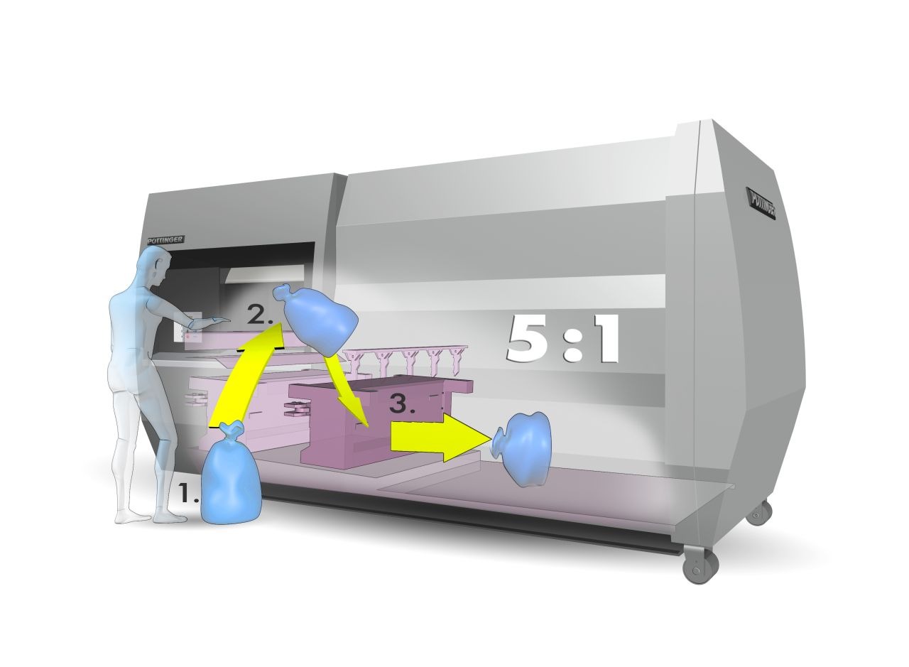 Con la Multipress ECO, Pöttinger offre un concetto intelligente di smaltimento dei rifiuti che offre notevoli vantaggi tecnici, ecologici ed economici per l'operatore: